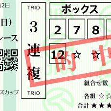 87倍ついたので問題無し・・でも△2頭は軸で買いづらいなぁ。川田も1600mの馬かもって言ってたじゃん・・ウソつき!
