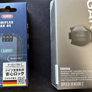 カーボンロードバイク用のワイヤーロックと、スピードセンサー。